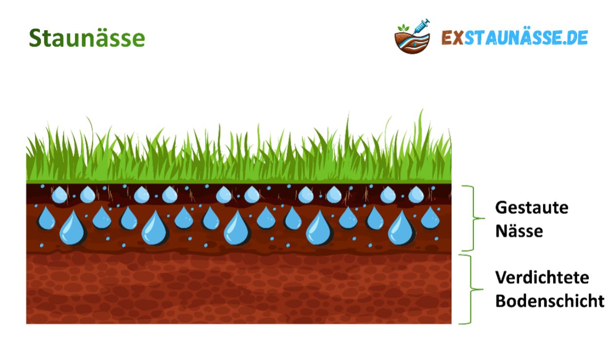 Staunässe kann zur Verdichtung der Bodenschicht führen, was die Sauerstoffzufuhr für Pflanzenwurzeln behindert und Wasseransammlungen verursacht. Ein verdichteter Boden sorgt für schlechte Belüftung und erschwert die Wasseraufnahme. Dadurch leiden Pflanzen an Nährstoffmangel und schlechter Wachstumsbedingungen.